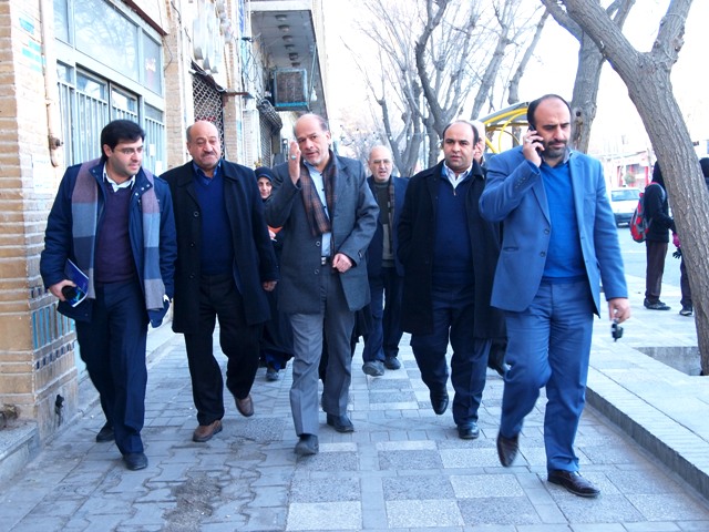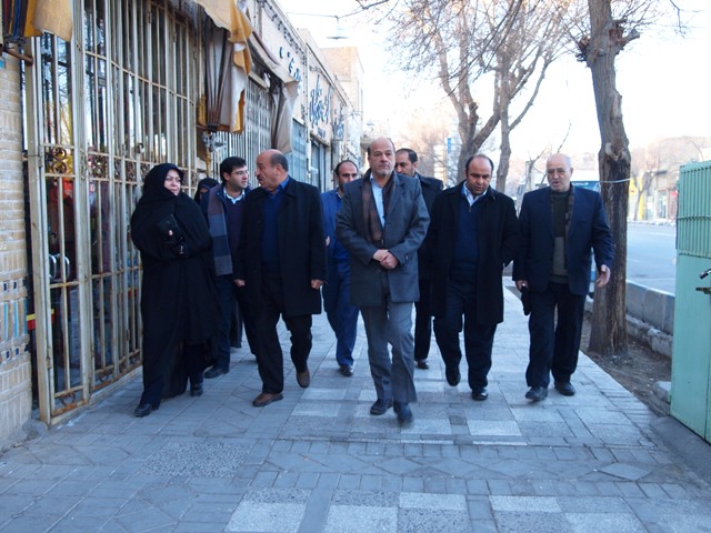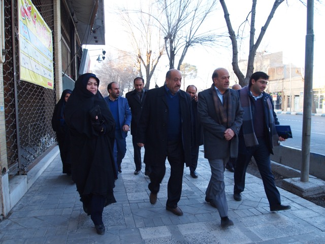 بازديد اعضاي كميسيون عمران و توسعه شوراي اسلامي شهر يزد ، فرماندار وشهردار از اجراي طرح سامان درخيابانهاي امام خميني (ره) و سلمان - شوراي اسلامی شهر یزد