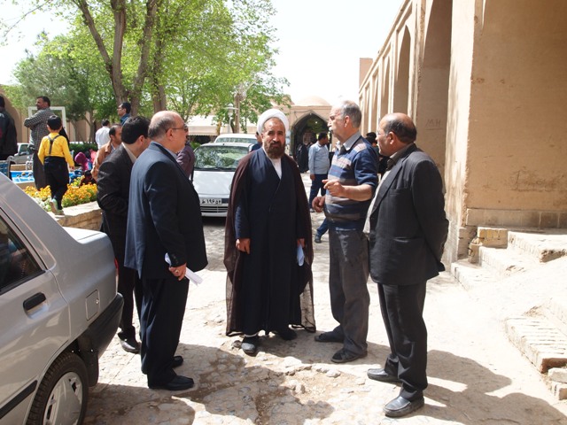 با توجه به فرارسيدن ايام عيدوحضور مسافران و گردشگران نوروزي؛ حجت الاسلام عباس زارع رئیس شورای اسلامی شهر یزد و دکتر مهدی کاشفیزاده دیگر عضو شورا درراستاي رفع مشكلات موجود در بافت تاريخي شهر از مجموعه گردشگري و توريستي ميدان و بازار خان بازدیدکردند.