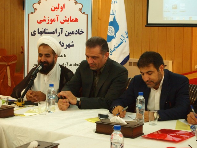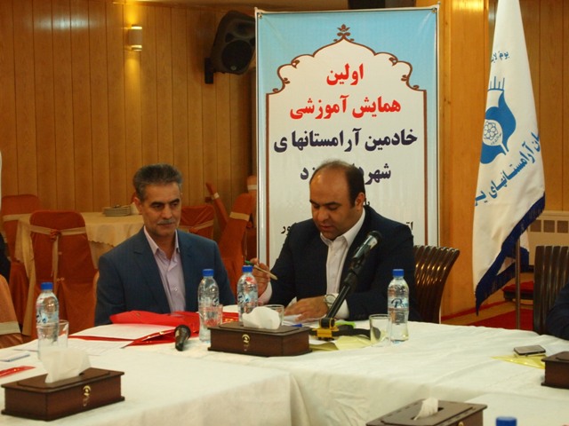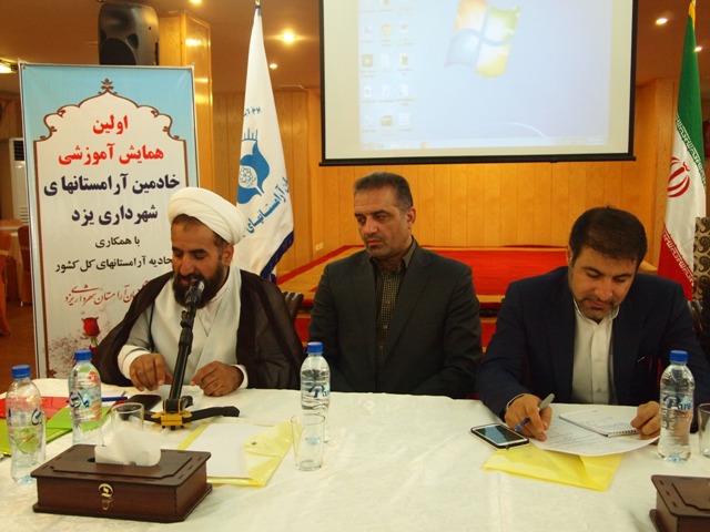 اولین همایش آموزشی خادمین آرامستان های شهرداری یزد صبح امروز با حضور حجت الاسلام زارع رئیس شورای اسلامی شهر یزد و جمعی از مسوولان و خادمین آرامسنانهای شهرداری در محل همایش های هتل داد برگزار شد.
