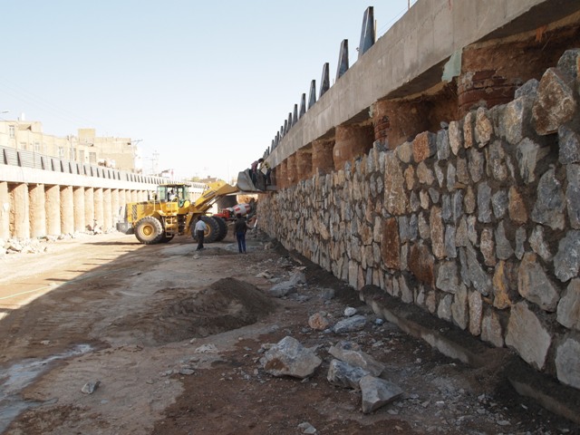 هم اکنون پایه های پل به صورت کامل در این زیرگذر نصب شده است و اجرای عملیات بدنه سازی با سنگ در حال انجام می باشد.